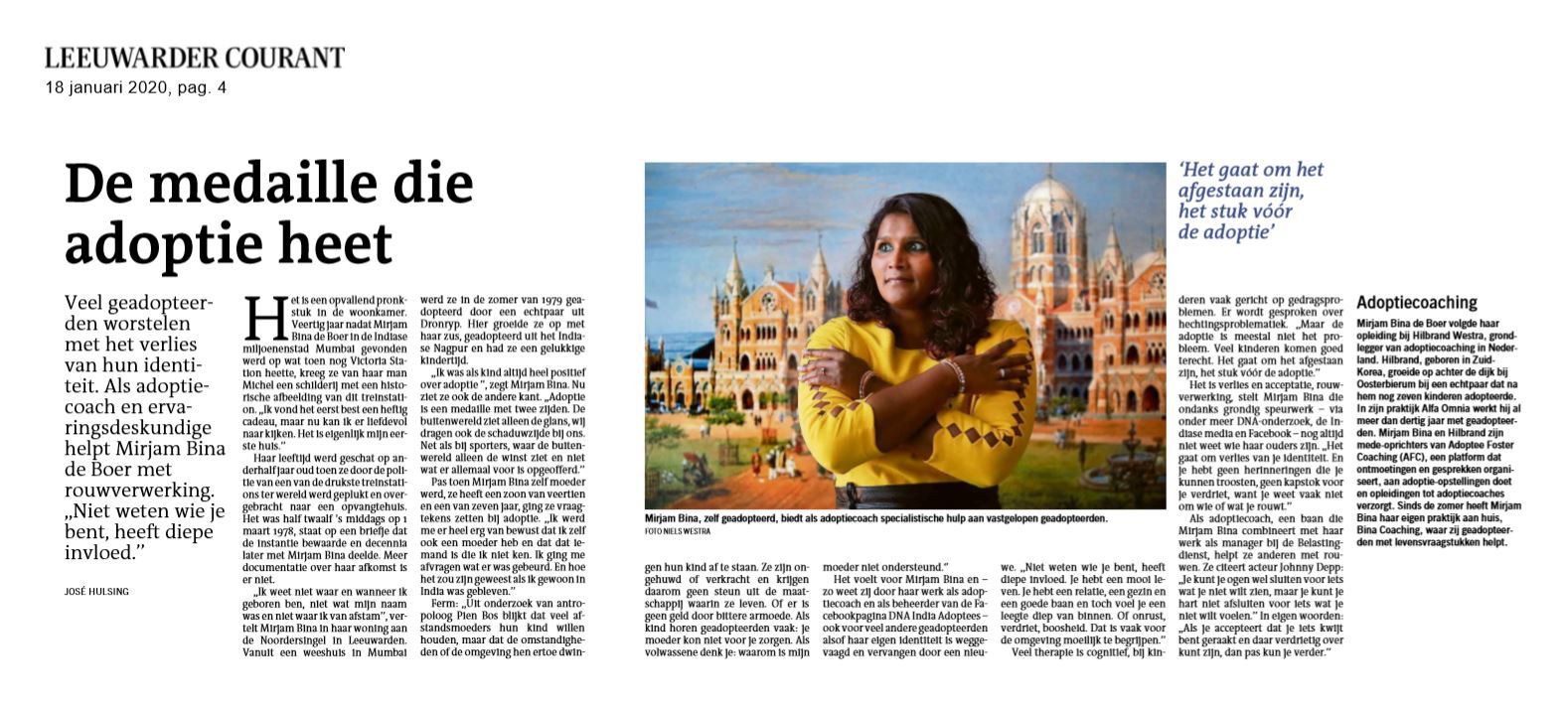 "Vanaf het eerste moment dat ik Bina leerde kennen voelde ik me op mijn gemak bij haar. Doordat ze zelf ook geadopteerd is, begrijpt ze wat ik nodig heb en waar mijn pijn vandaan komt.